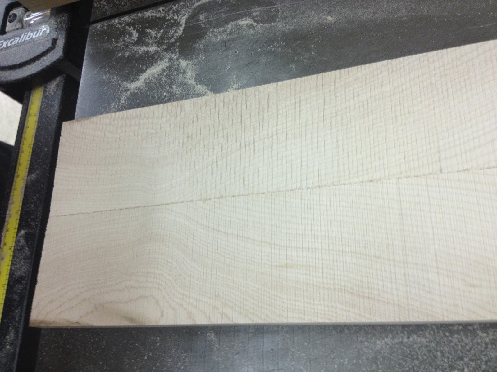 After Phil found the drift, he paralleled it with the jig and then moved the rip fence to resaw down the middle of his board